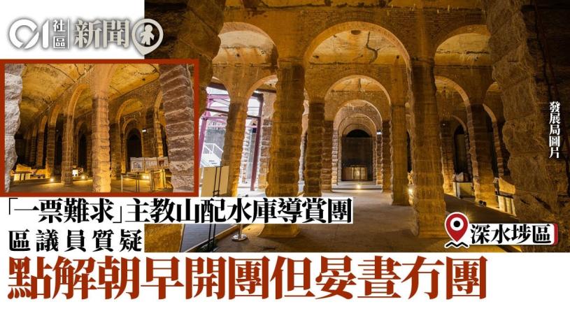 由水務署主辦、深水埗主教山配水庫免費導賞團自開始後可謂「一票難求」,而導賞團近日因疫情需要暫時停辦,市民可透過水務署的360度虛擬導覽,而就配水庫的長遠保育和活化方案,政府只表示「當局會研究」。在今日舉行的深水埗區議會會議中,多名區議員包括袁海文、伍月蘭、覃德誠、李庭豐作出提問,包括是否會增加導賞團人數及調整導賞團的安排、會否撥出部份時段讓公眾人士或民間組織舉辦導賞團、有否就導賞團的內容諮詢民間組織和社區人士等等。