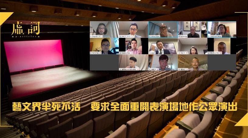 表演場地重開,卻不開放予公眾,有網民揶揄是「見(農曆)七月未過,盂蘭冇得做神功戲,依家補返」,更有從事舞台劇界中人直言,「究竟要幾離地,先可以認為,我哋係喺個表演場地入面排練?」場館不能全面開放,藝團無法作公開演出,就連政府的資助條件也不符合。在這段抗疫期間,無論是在創作、營運、製作,以至經濟及發展,藝文界正面臨前所未有的考驗,尤其業界約八成從業員屬自由身,藝文活動相繼取消或延期,令台前幕後多月來「手停口停」。