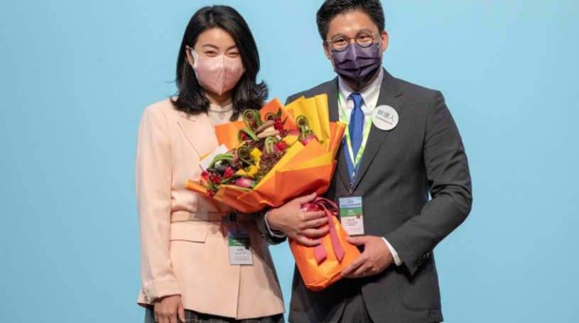 新一屆的立法會90個議席人選已塵埃落定,體育、演藝、文化及出版功能組別(簡稱:體演文出)有2名候選人,終由藝發局大會委員霍啟剛奪得195票當選,太太郭晶晶更精心炮製蔬菜組成的「花束」上台獻花。該組別上任立法會議員馬逢國今年循選委界別出選,同樣成功當選。